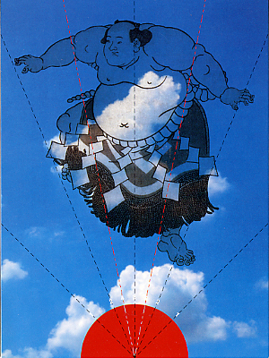 軽やかにいきたいものだよ という希望の1枚 点線を折ると 紙飛行機になります Sumo wrestler 2005 I wished being easy going in this card, you can make paper air plane with this card.